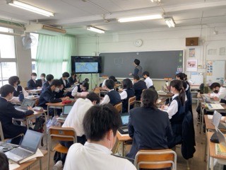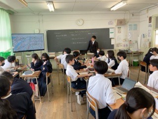 社会Aは、大正区にはなぜ急行バスがあるのかについて学習しています。