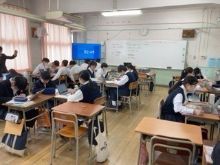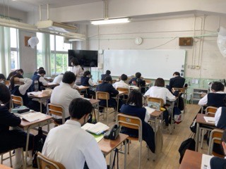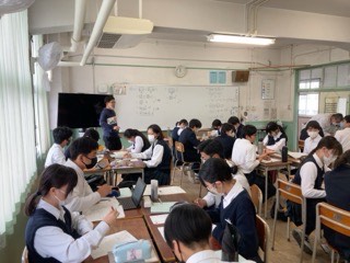 社会は、冷戦と日本の発展についてグループワークを通して意見交流をしています。