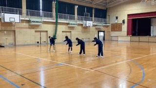 ラジオ体操のテストを行っています。