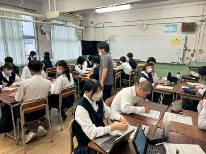 放課後の生徒議会で、各学級から持ち寄った「いじめ撲滅宣言」をもとに、