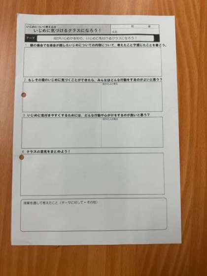 全校集会のあと、各学級の「いじめ撲滅宣言」を考えました。