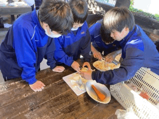 材料を切ったり、薪を組んだり、皿を準備したり、それぞれに自分のすべきことを考えて行動しています。