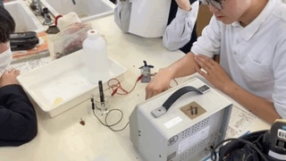 電気を通す水溶液についての実験をしています。