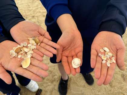 砂浜で貝殻を拾いました。