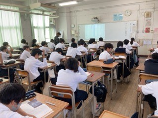 国語は、クジラの飲み水の朗読CDを聴きながら教科書の内容を目で追っています。