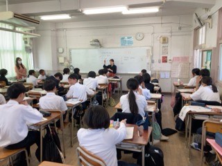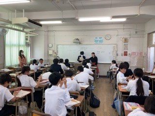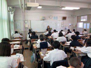 英語は、自己紹介の練習をしています。皆で練習した後に発表もしています。