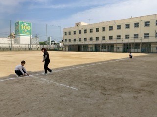 朝から野球部の皆さんが学年練習の準備を手伝ってくれています。