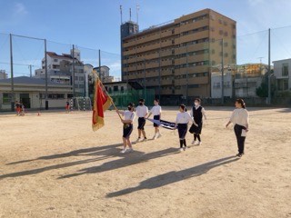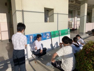 放課後に美術部が得点板やスローガンを作成してくれています。