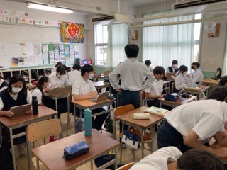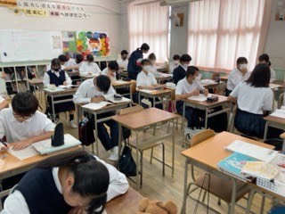 数学は、根号の乗法・除法の練習問題に取り組んでいます。