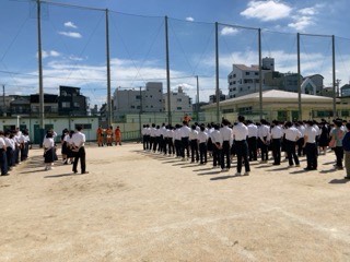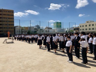 迅速な避難で全校生徒集合完了まで2分40秒という結果でした。