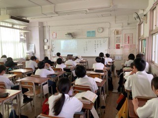国語は、「字のない葉書」を題材に戦時下の様子の映像を観ています。