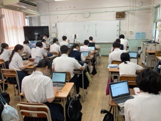 学習者用端末を活用して、単語や熟語の意味調べをしています。