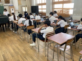 学習者用端末を活用して小テストに取り組んでいました。