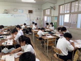 アメリカの産業について班で調べた内容を共有したり、考えたことを全体で共有したりしました。