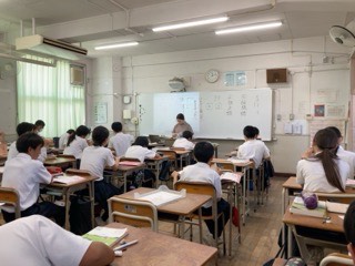 プリントに取り組んだ後、文法ワークの範囲を確認しています。
