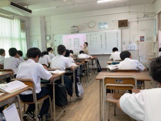 「月を思う心」を題材に、「月」の異名(例:一月は睦月)について学習しています。