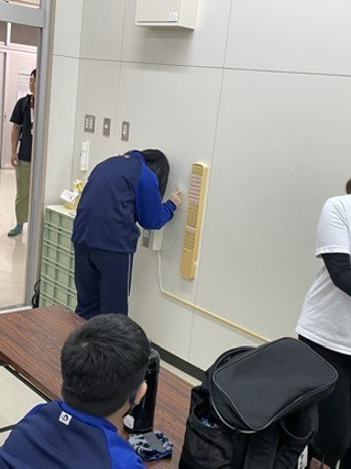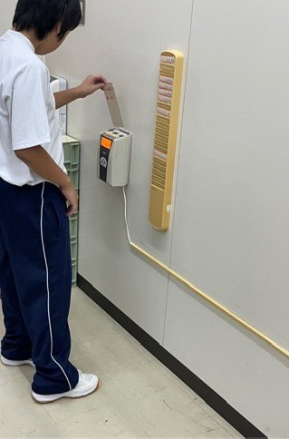 タイムカードを押して、おしぼり加工の準備をこれから行います。