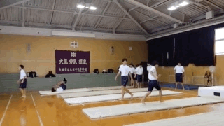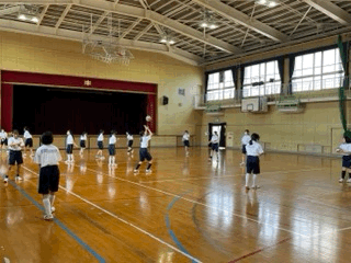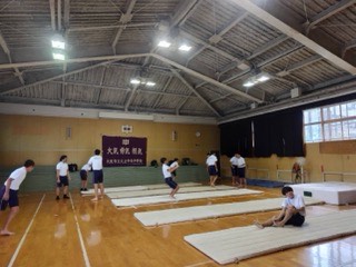 男子はマット運動、女子はバレーボールに取り組んでいます。
