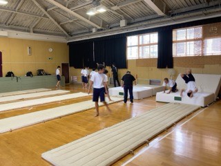 男子は、マット運動のハンドスプリングに取り組んでいます。