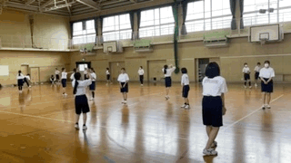 女子は、バレーボールのパスを繋ぐ練習をしています。