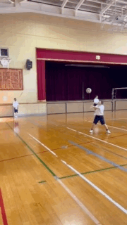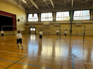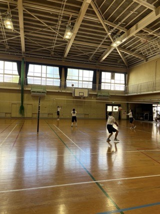 女子は、バレーボールの直上パスの実技テストに向けて練習をしています。
