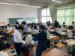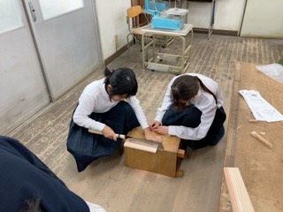 家庭科は、イチゴとメロンの形をした作品を縫い付けています。