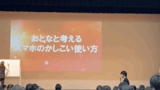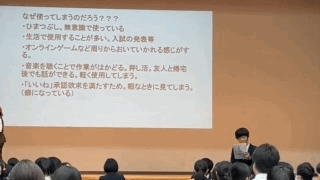 第二部の「スマホ依存を防ぐために」にて、意見を発表している様子です。