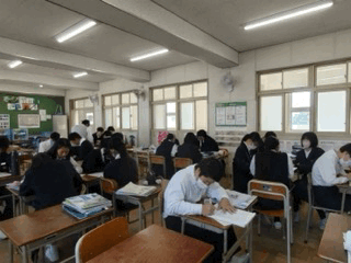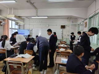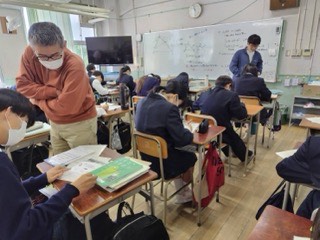 国語は、おくのほそみちのプリント学習をクラスメイトと実施しています。