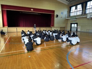 3年生の進路やスポーツについてお話ししています。今、2年生のこのタイミングで頑張っていると、チャンスが増える可能性があります。