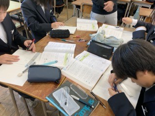 国語は、「みんなでいるから大丈夫」の怖さを題材に、情報を関連づけることを学習しています。