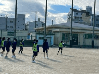 明日は3クラス合同でフリスビー大会をするので練習も兼ねてゲームをしています。