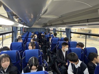 バスに乗って、体験場所に向かっています。