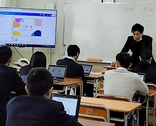 美術は、デザインツールを使って、チラシや名刺を作成しています。