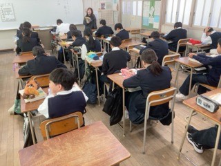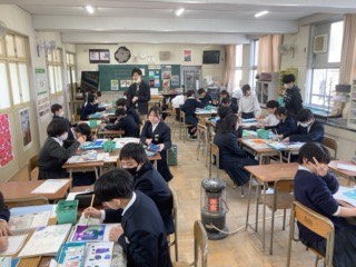 美術は、「気持ちの花を咲かせよう」を題材に、ポスターカラーを使用して絵を描いています。