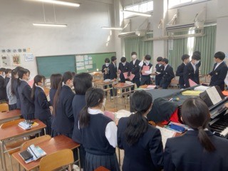音楽は、卒業式の合唱曲の練習をしています。