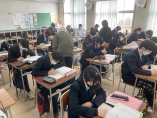 英語は、各自英語のワークの課題に取り組んでいます。