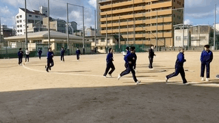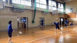 男子は持久走、女子はバドミントンに取り組んでいます。