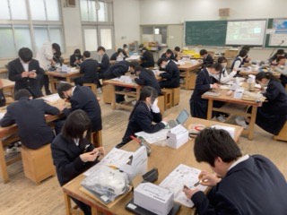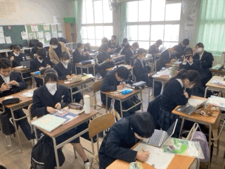 家庭科は、クロスステッチのデザインを考えたり作業に取り掛かったりしています。