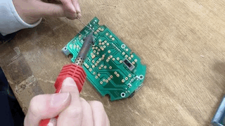 技術は、はんだづけをしています。