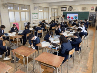 美術は、マインドマップを利用して果物からイメージを膨らませています。