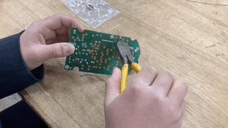技術は、はんだづけの作業をしています。