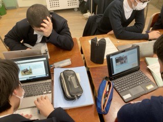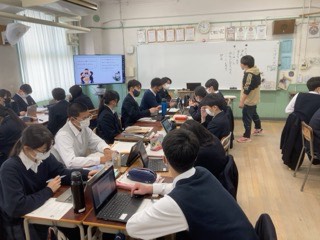 スライド資料を見ながら、『命輝く未来社会のデザイン』とは何かを考えています。