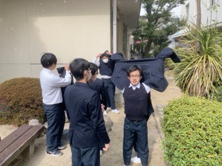 受験前ですがテンションの上がった3年生は雪を満喫しています。