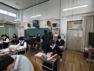 音楽は、エルガーの「威風堂々」のリコーダーテストをしています。
