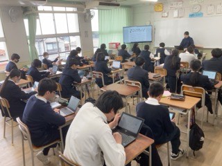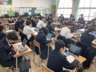 国語は、走れメロスの登場人物について、どのような人かをオンラインツールを活用してクラスの皆で共有しています。