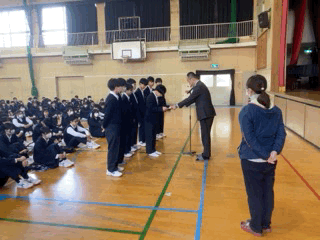 また、男子バレーボール部の1年生と日本拳法の全国大会において準優勝した1年生1名が表彰されました。
