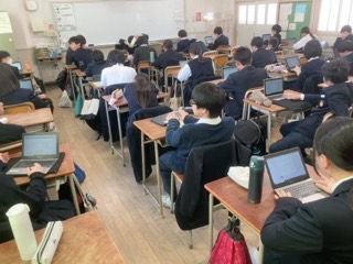 技術は、製作の振り返りを学習者用端末でしています。それが終わっている人はタイピングに取り組んでいます。端末を忘れないようにしましょう!