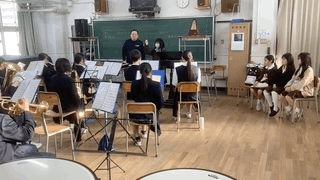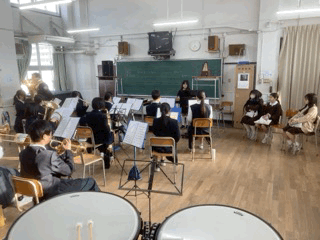 指揮をしたり、先輩の演奏している様子を近くで見たりしています。