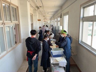1・2年生−給食配膳の様子