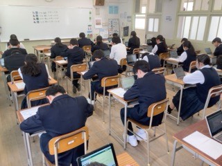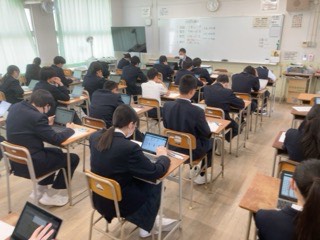 今回、初のCBT化でのテストとなっており、学習者用端末を使用して解答しています。